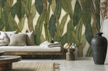 Обои с рисунком Листья — хорошее решение для спальни, гостиной, детской. В общественных местах подойдут для декорирования холлов, комнат отдыха, особенно с паттерном тропических растений, большие листья. Зеленые растения будут уместны на кухне.