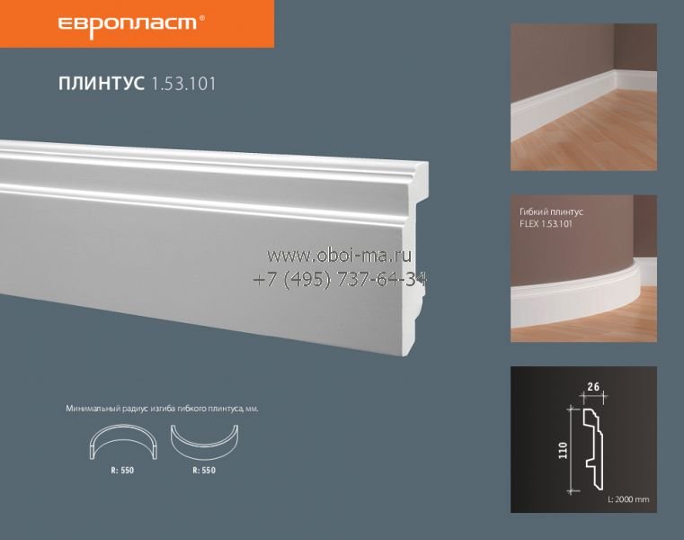 Лепнина ЕВРОПЛАСТ Напольные плинтуса 1-53-101