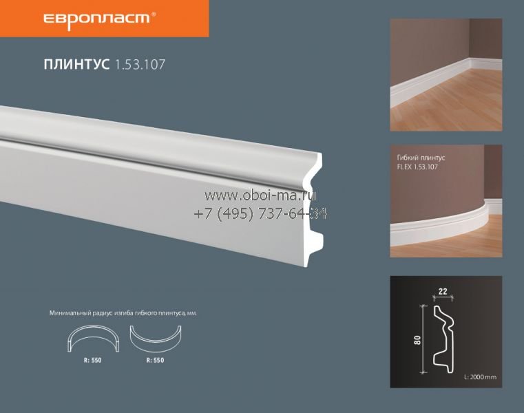 Лепнина ЕВРОПЛАСТ Напольные плинтуса 1-53-107