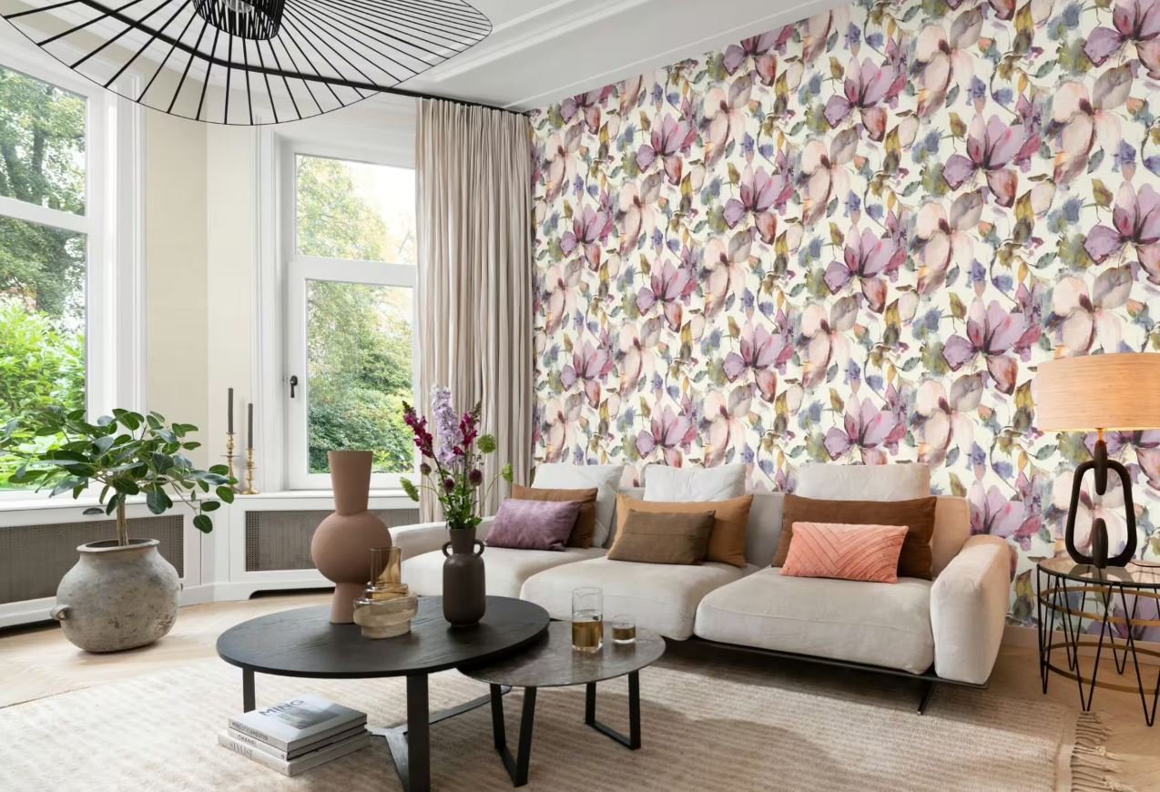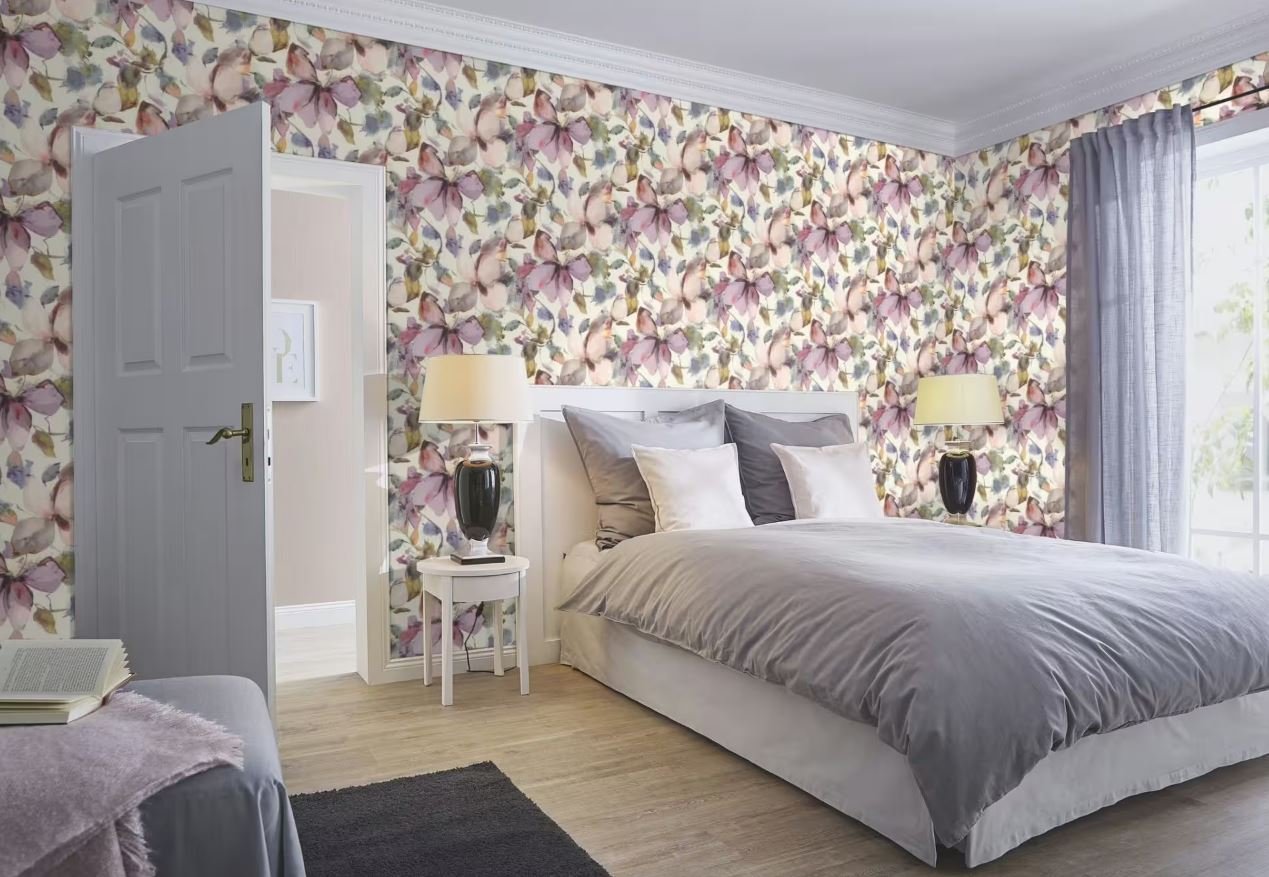 - Сиреневые обои имеют уникальный оттенок, который сочетает в себе фиолетовый и розовый цвета.