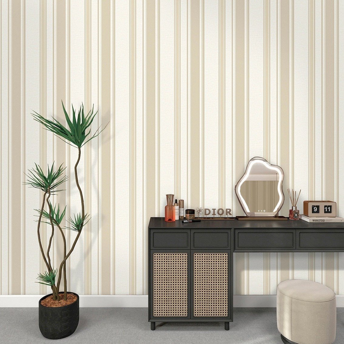 Обои в полоску для стен — классический вариант для разных помещений от жилых до офисных. Они позволяют зрительно увеличить высоту стен, сделать визуально шире узкий проход, подчеркнуть особенности дизайна с помощью сочетания разных цветов, орнаментов, идеальны для корректировки неровных стен. Их можно комбинировать с однотонными для зонирования, украшения квартиры и т. п.