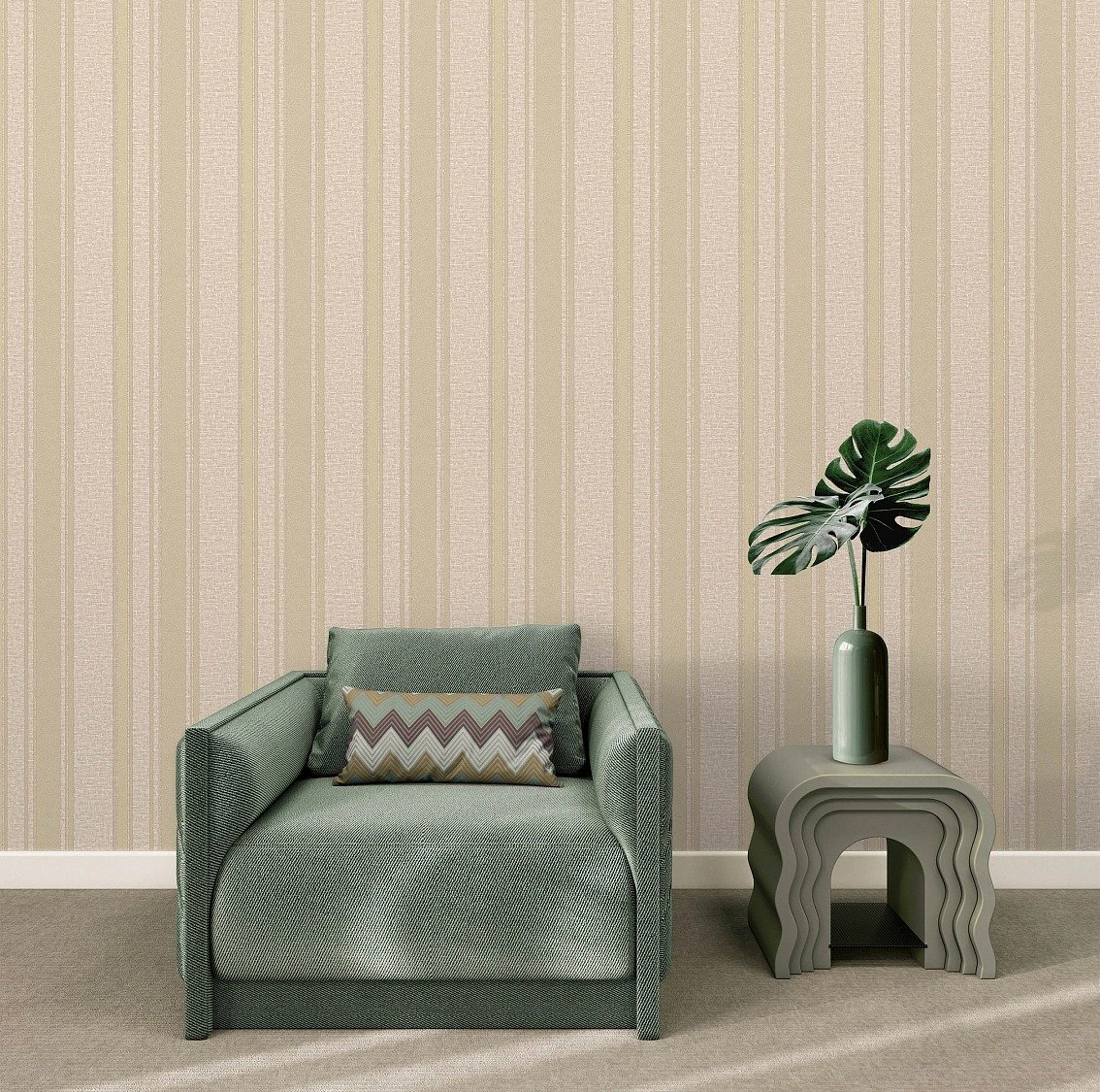 Обои с полоской — одни из самых популярных, толщина, цвет и вид узора могут быть разными, всё зависит от того, в какую комнату вы собираетесь их применить: