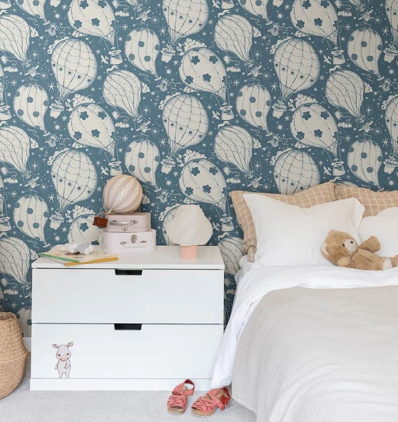 Фантазийные сюжеты с воздушными шарами, поездами и цирковыми мотивами превращают стены в карту детских грёз. Эти обои создают атмосферу лёгкости, радости и искреннего удивления, наполняя интерьер ощущением путешествия.